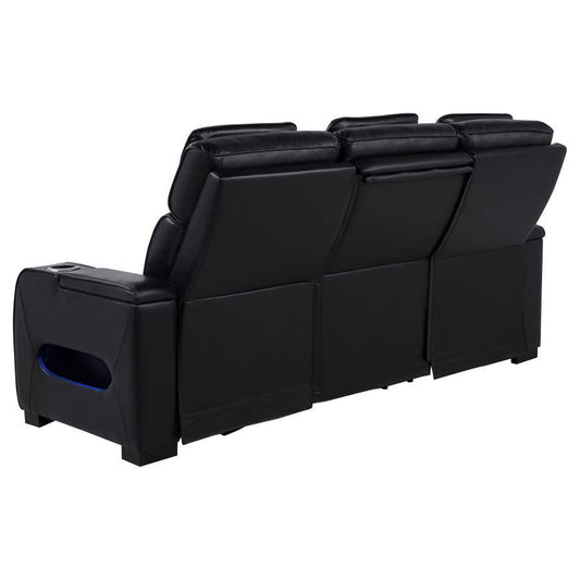 Zuma - Faux Leather Dual Power Reclining LED Sofa - Black
