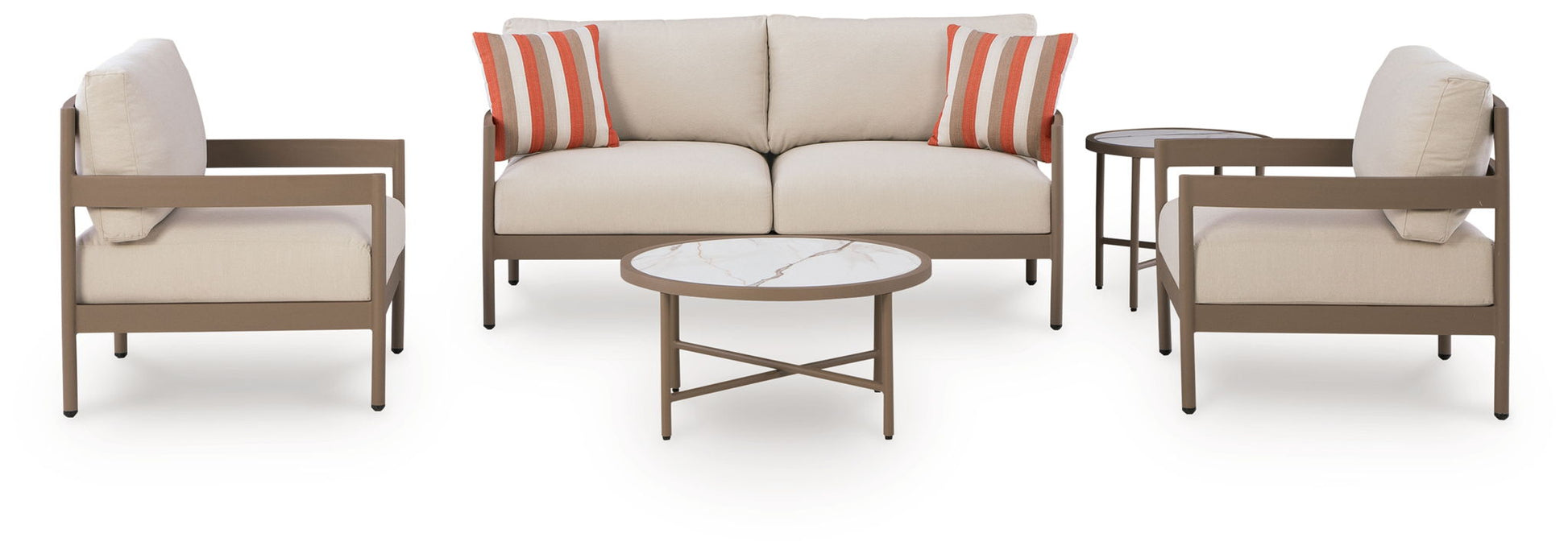 Bluff Trail - Loveseat, Lounge Chairs, Tables Set (Set of 5) - Beige