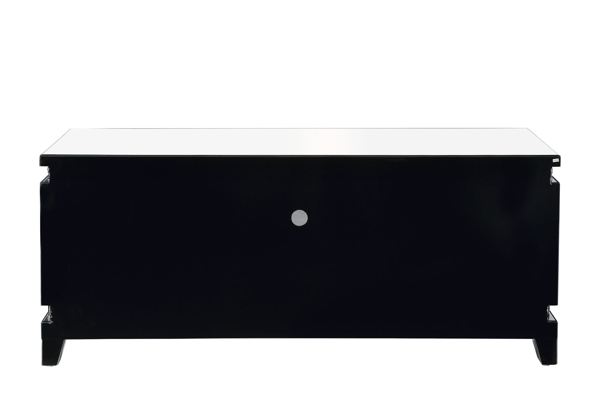 Indulge in some Hollywood glamour while enjoy your TV time. The Lotus TV stand boasts a glimmering border with faux crystals that make it stand out in a bright glam style. It's mirrored surfaces add depth and shine to room areas, giving you a clear and spacious table top space. Two cabinets and a storage drawer help you hide away odds and ends while a open compartment in the middle for electronic devices.